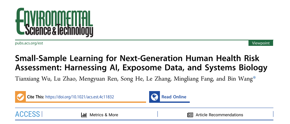 2025年1月2日,北京大学王斌教授课题组与何松教授(军事医学科学院)、张乐教授(电子科技大学)和方明亮教授(复旦大学)在Environmental Science Technology杂志合作发表了题为《面向下一代人群健康风险评估中的小样本机器学习:融合人工智能、暴露组与系统生物学大数据》(Small-Sample Learning for Next-Generation Human Health Risk Assessment: Harnessing AI, Exposome Data, and Systems Biology)的研究成果。在环境暴露与人群健康研究中,传统流行病学研究面临着诸多挑战,如高维数据难以处理、大样本需求与研究成本之间的矛盾等。这些限制在应对复杂暴露环境时尤为显著。本研究提出,小样本学习作为一种创新方法,可以通过整合暴露组大数据、人工智能技术和系统生物学信息,显著提高评估效率和结果的可解释性。研究详细讨论了大规模暴露组数据库的应用、多组学数据整合的必要性,以及深度学习技术在优化小样本学习中的潜力与实践。未来,基于AI和大数据的风险评估方法有望成为解决传统流行病学局限的关键路径。
